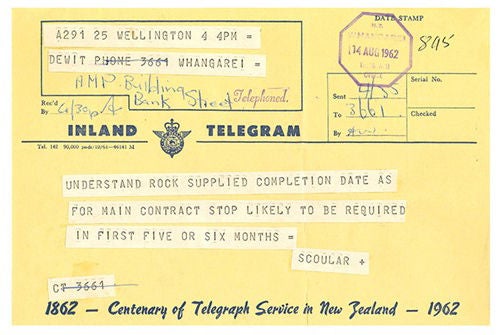 In 1880, when New Zealand’s population was only 600,000, more than one million telegrams were sent. The Post Office provided the telegram service for 125 years until it ended in 1987.