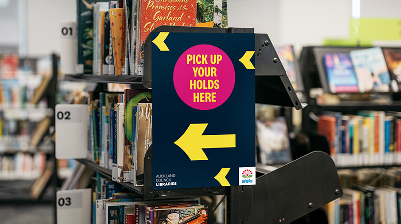 If you have more than one library item to collect, you may need to find and collect your library items from more than one numbered shelf in the holds pick-up area.